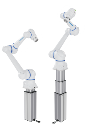 The ready-to-install LIFTKIT increases the reach of the YASKAWA robot by moving it along a vertical axis to always place the robot base in an optimal working position. This increased reach improves productivity and reduces costs.