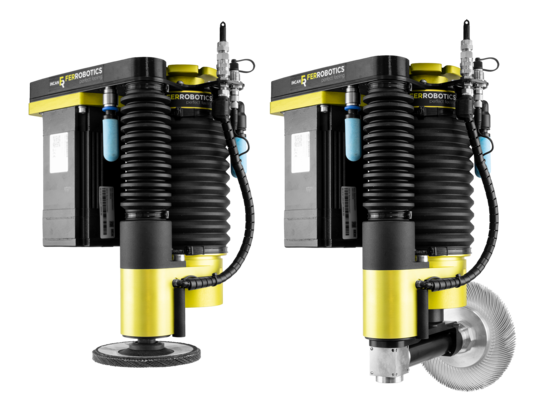 - Active Force Compliance end-effector for all kinds of surface finishing. 90-degree drive for satin finishing, cutting, radial brushing, and many more.