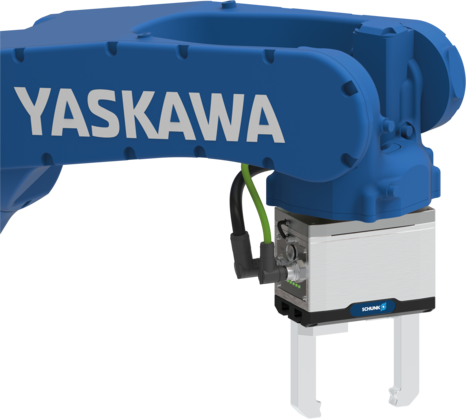 The EGU universal gripper from SCHUNK is ideal for flexible production processes starting from batch size 1, even in harsh environments. It can be easily integrated into multi-variant production processes. With integrated gripping force maintenance and StrongGrip mode for increased gripping force, it is a reliable all-rounder for diverse handling tasks. Hardware and software integration is simple due to the available plugin, cable package and adapter specifically designed for Yaskawa robots.