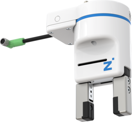 The HRC-03 is an electric 2-jaw parallel gripper for human-robot collaboration (HRC), which has a maximum stroke of 20 mm and can be connected directly to the Yaskawa robot flange ("plug&work"). The gripper is equipped with two digital sensors for component recognition. In addition, the gripping force of the HRC gripper can be manually adjusted in four steps- from 50 N to 190 N. The HRC-03 has no sharp edges and is designed in such a way that, with its rounded shape on all sides, accidental snagging is practically impossible. This functionality, combined with mechanical self-locking of the gripping jaws and the resulting retention of gripping force, provide maximum safety in any application - even in the event of an emergency stop or power failure. All MRK grippers from the Zimmer Group meet the high requirements of the protection principles according to ISO/TS 15066 (MRK standard) and are BG/DGUV certified.