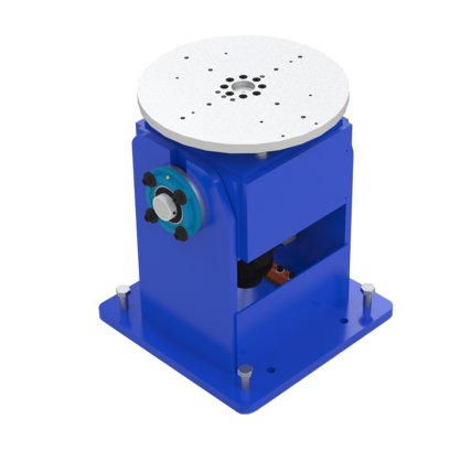 A one station positioner for workpieces requiring rotation about one axis. It can be used without tailstock and therefore ideal for integration in compact welding stations.