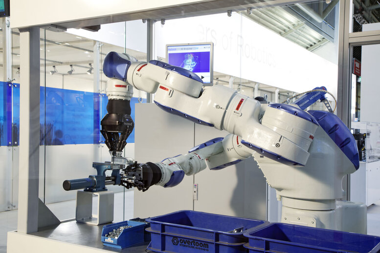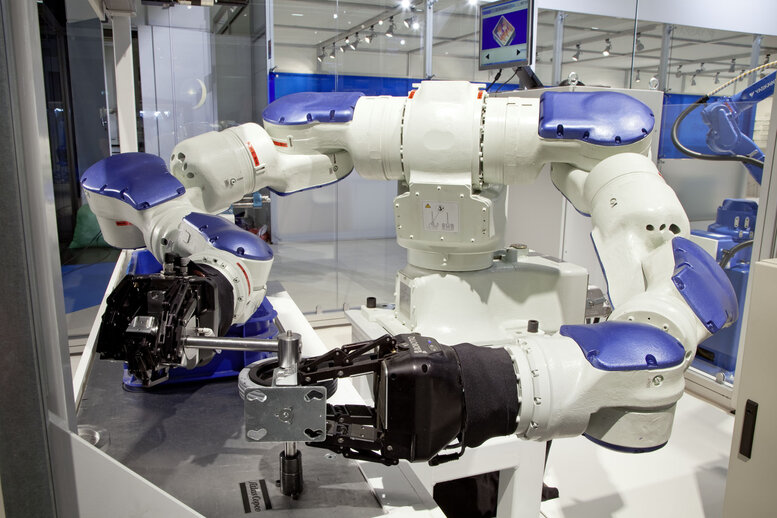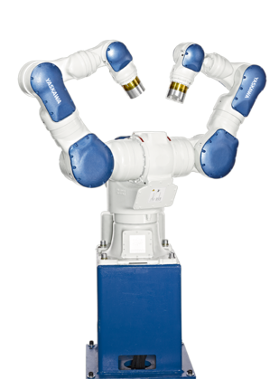 The SDA20F is a dual-arm, 15-axis robot designed with a payload of 20 kg and reach of 1.323 mm per arm, perfect for complex assembly and small part material handling applications. Both arms can work together dramatically simplifying end-of-arm tooling. Designed with patented servo actuators, all cables are routed through the arms. The FS100 is a powerful controller with unmatched open software architecture. Superior dexterity and best-in-class wrist characteristics make slim, dual-arm robot ideally suited for assembly, part transfer, machine tending, packaging and other handling tasks that formerly could only be done by people.