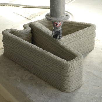 For larger workpieces, industrial robots can provide a long reach. In combination with external axis devices like swivelling or rotating bases, positioners, linear tracks or gantries, they provide unbeatable working space. With such a Robotic 3D printer, spatial free-form structures become possible that require little or no support structures ("Free Space Fabrication" / FSF).