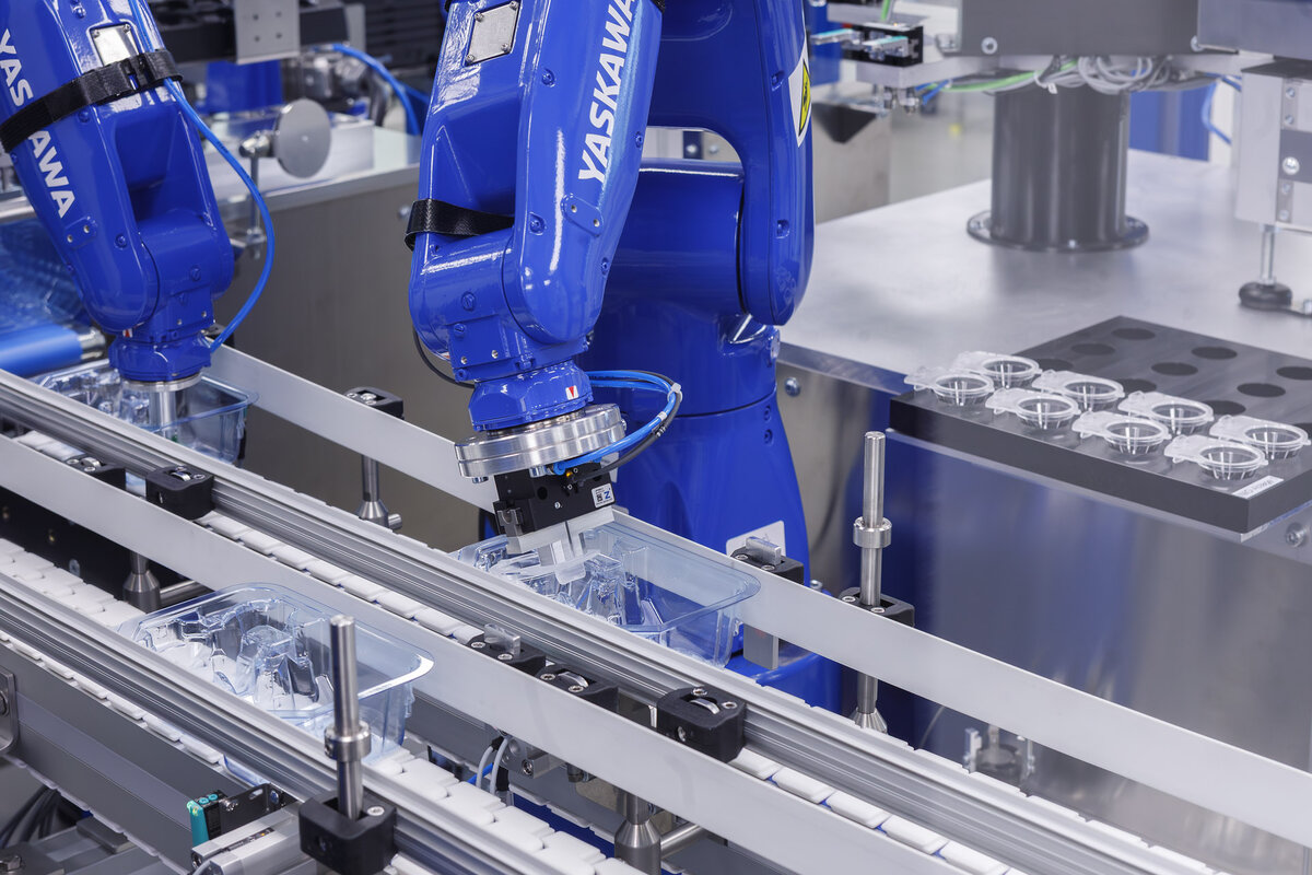 Initially, for Pinger Robotic, this order involved no more than automating the assembly of a camera-based testing system at medical technology specialist WaveLight. Further upstream and downstream handling steps were then added as the project progressed. The result is a handling and testing cell that is as complex as it is compact, in which a total of four MOTOMAN GP industrial robots from Yaskawa interact with high precision.