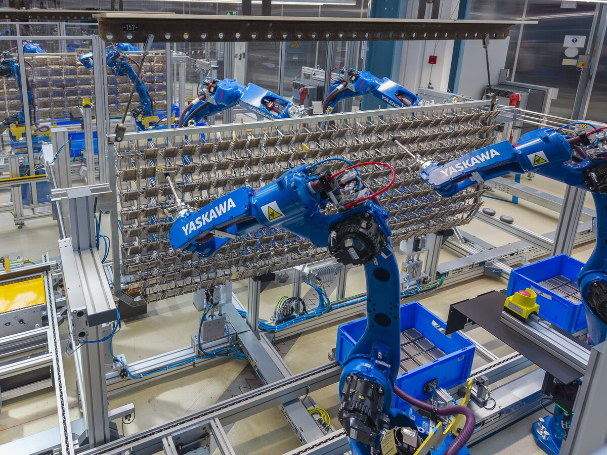 Picture: Eight MOTOMAN GP12 robots then remove the components and place them in SLCs.